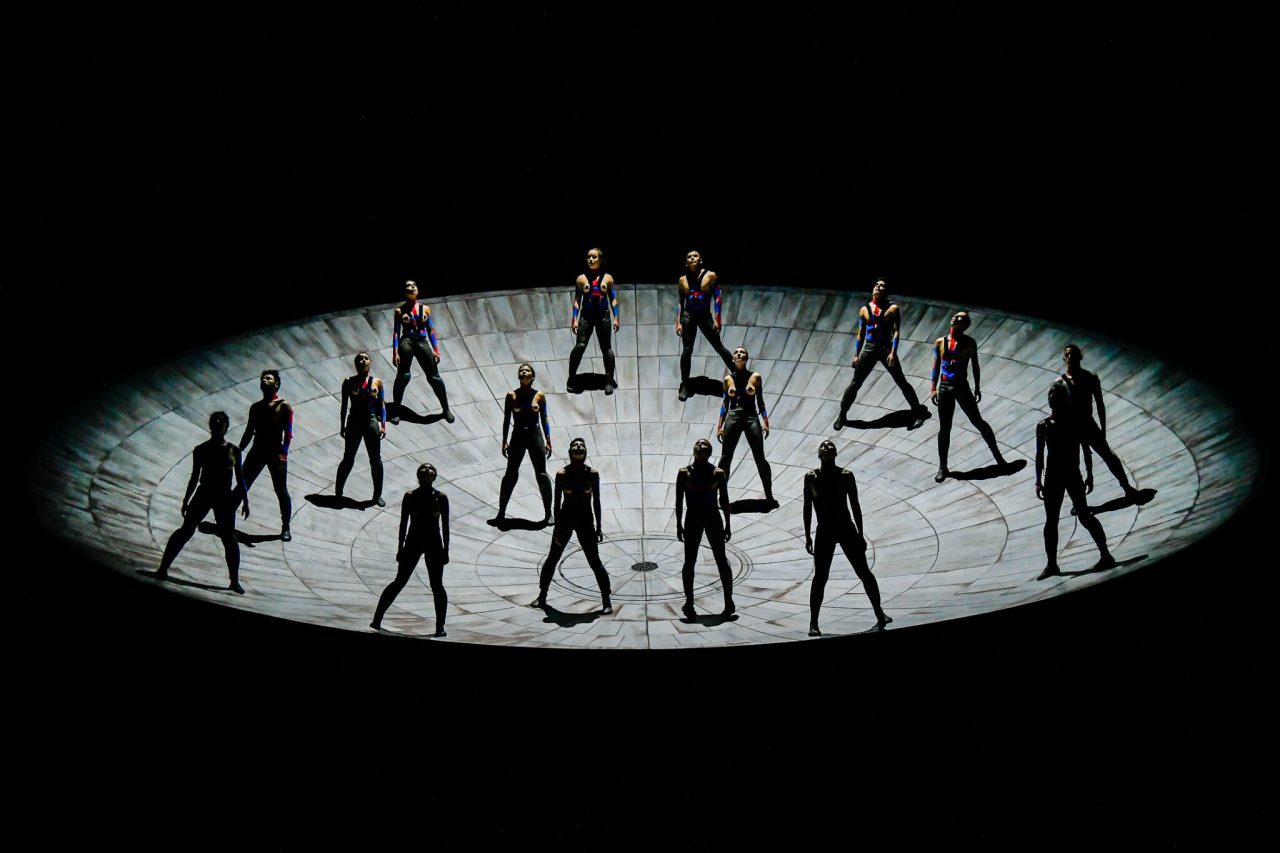 The dancers’ bodies, clothed in these signs, extend Damien Jalet’s reflection on the perception of time, unstable cycles, and the invisible forces that move through our existence.