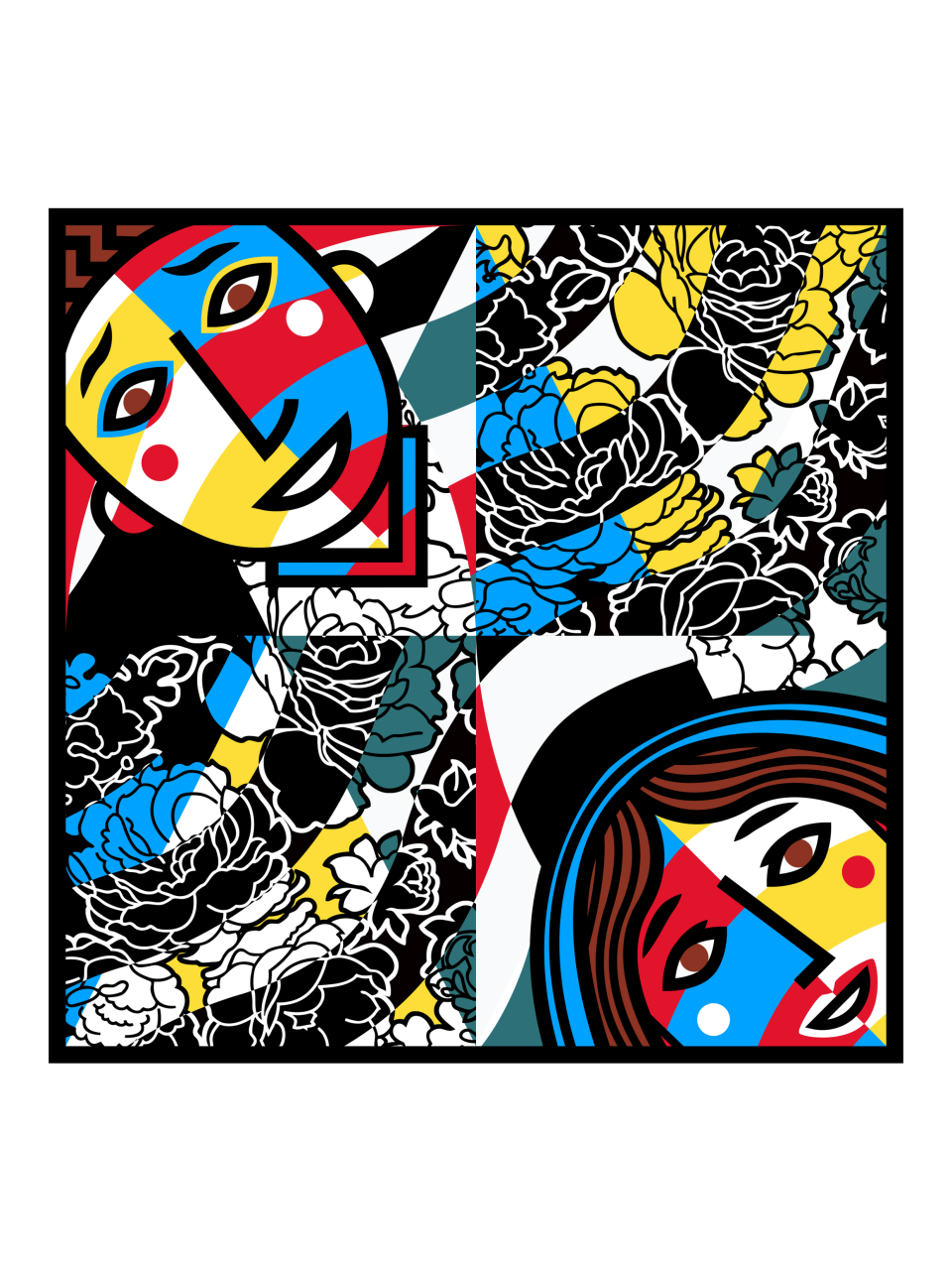 I create custom scarves shaped from a conversation with the people who commission them. Everything begins with a meeting, a moment to understand the intention, the context, the message to carry. From that exchange, one or several graphic proposals are built around the cultural landscape, the sensitivities involved and the symbolic reach you are aiming for.