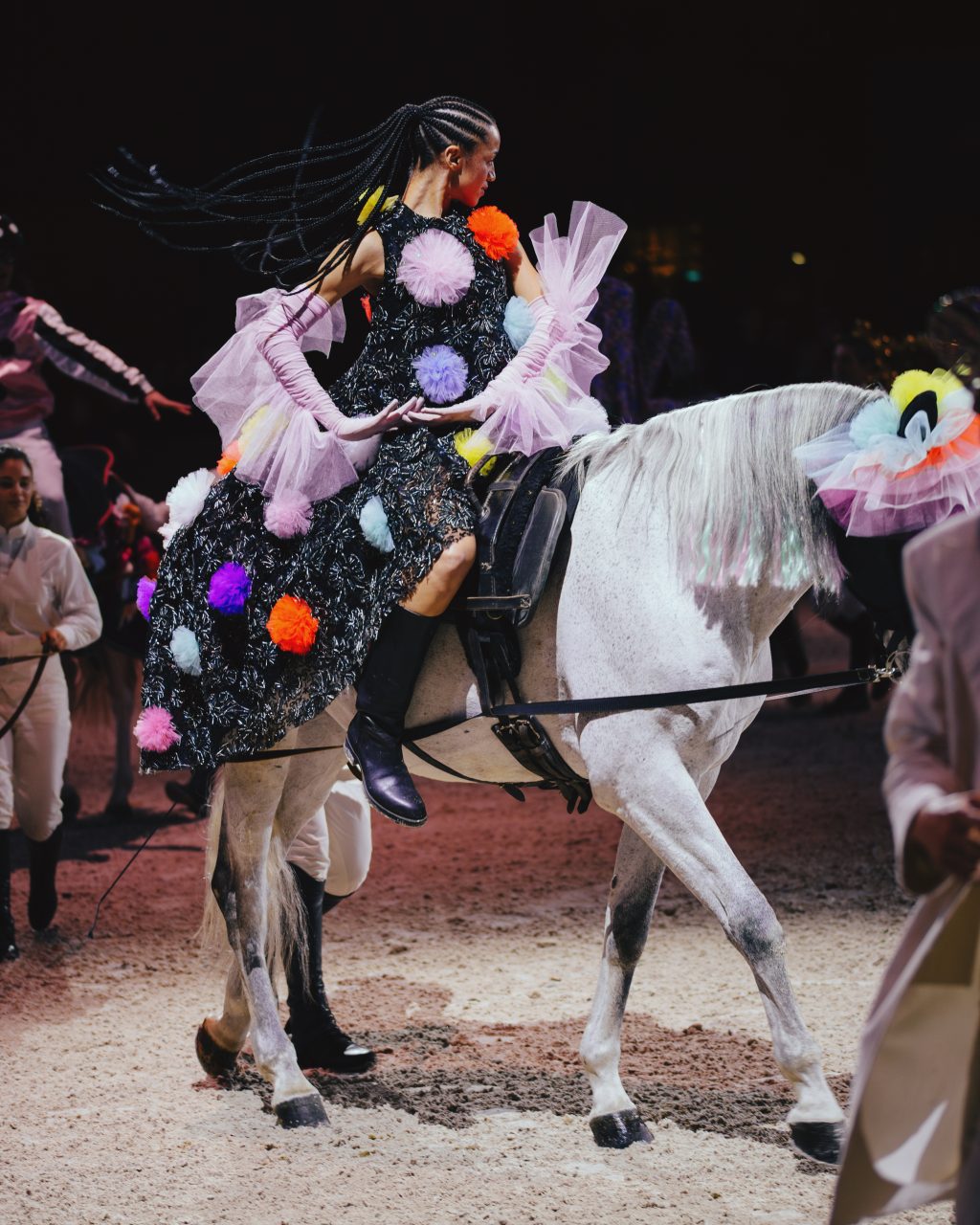 Designing for Le Saut Hermès opened up an exciting creative playground, where animal performance met choreographic energy. I received the ambitious task of conceiving and producing the costumes and the props for this midtime-show performance, imagined as a modern mythology by choreographer duo I Could Never Be A Dancer. A full creative universe unfolded, developed and produced between Belgium, France, and Mexico, before coming to life in the Grand Palais in Paris.