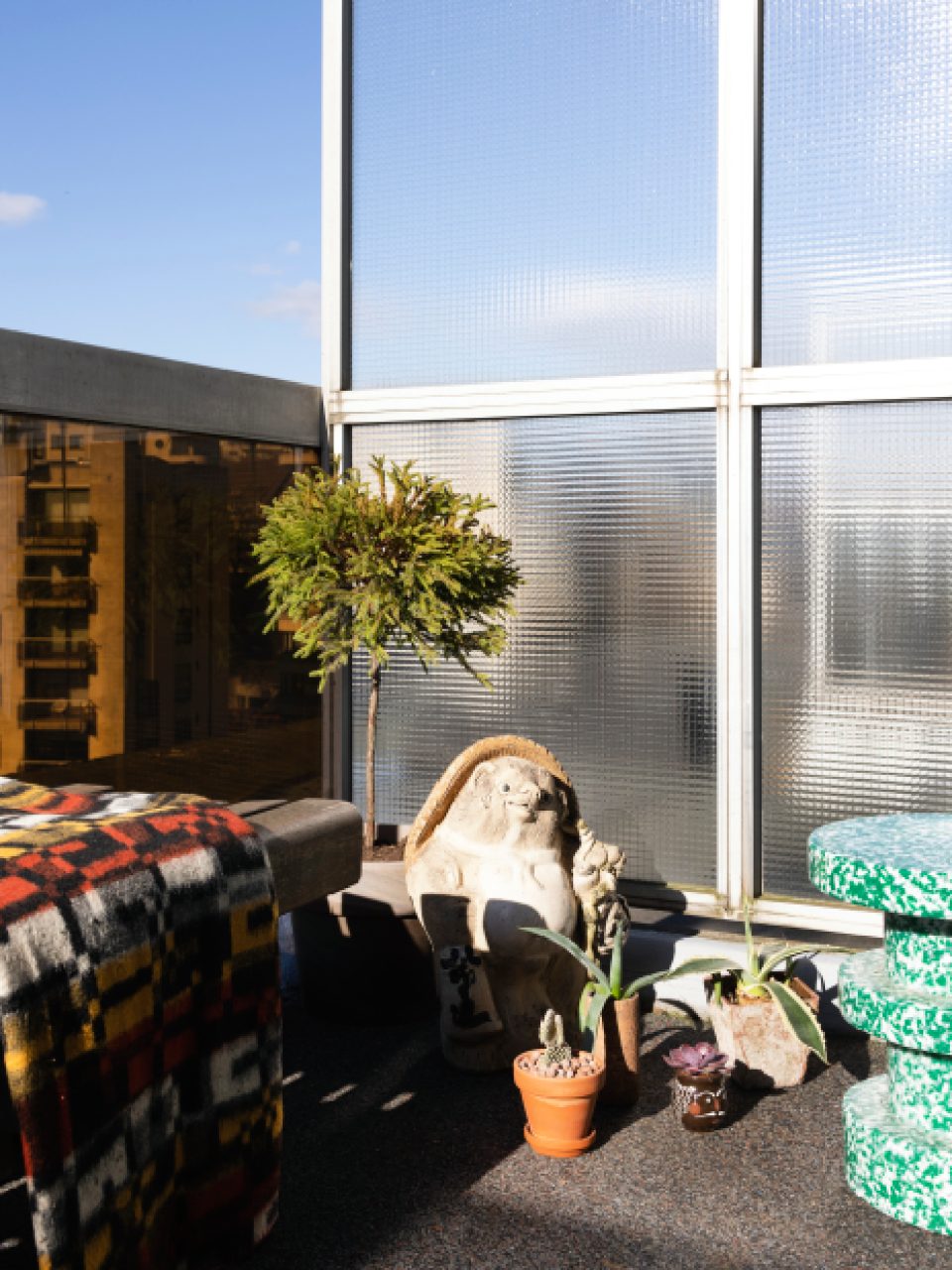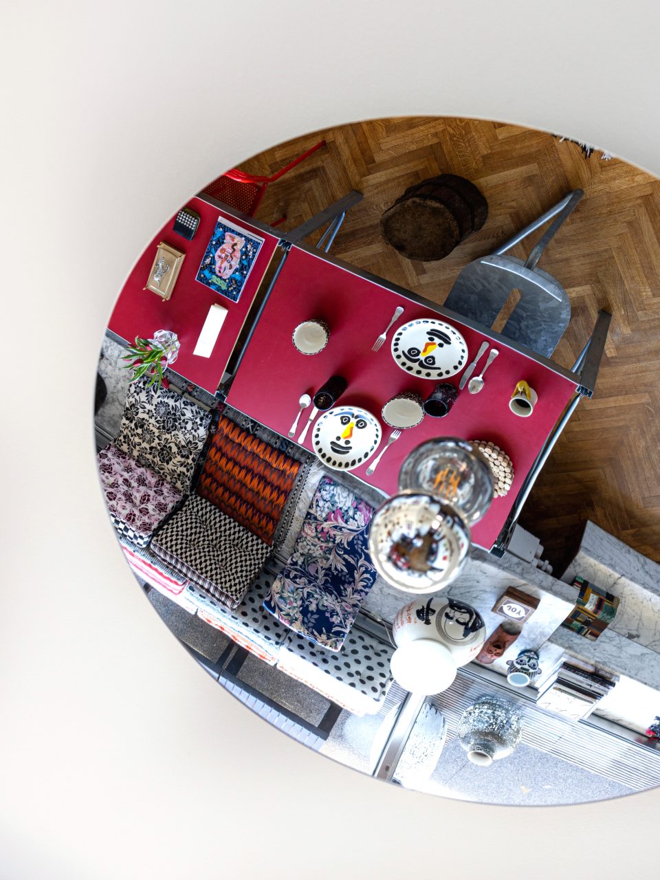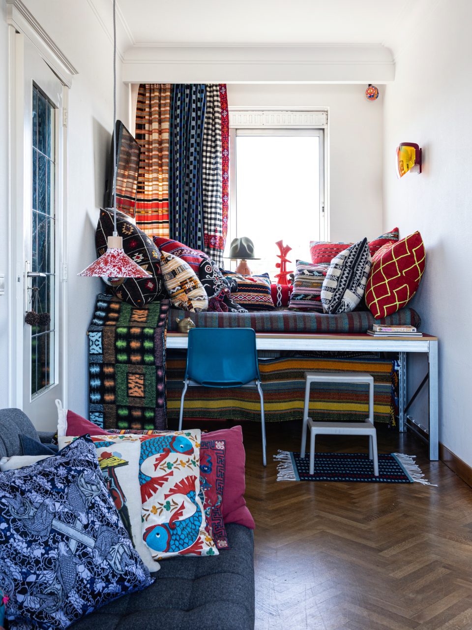 I designed this 45 sq/m penthouse as a flexible, nomadic home, where modular, self-designed furniture and adaptable spaces reflect movement, storytelling, and everyday craft.